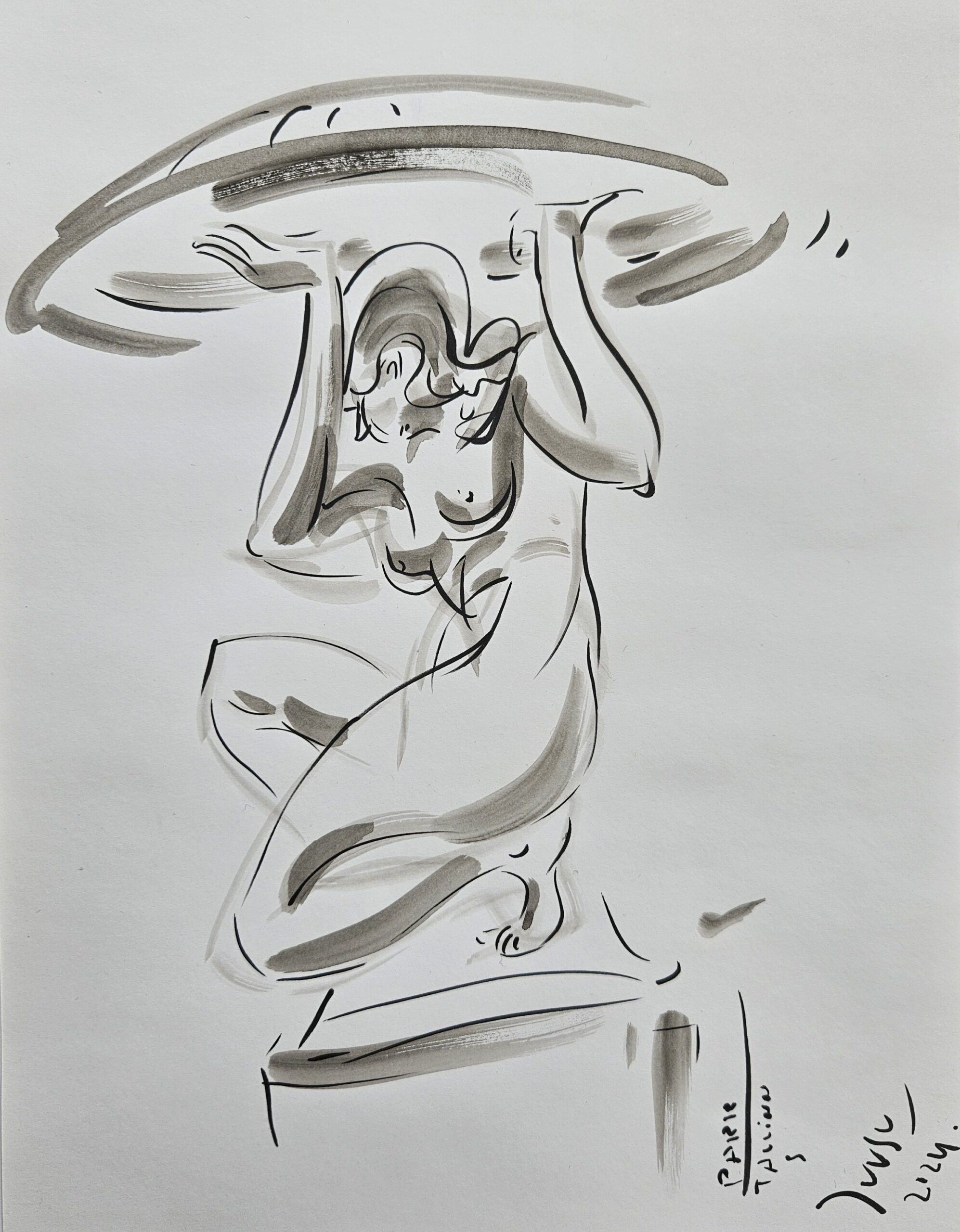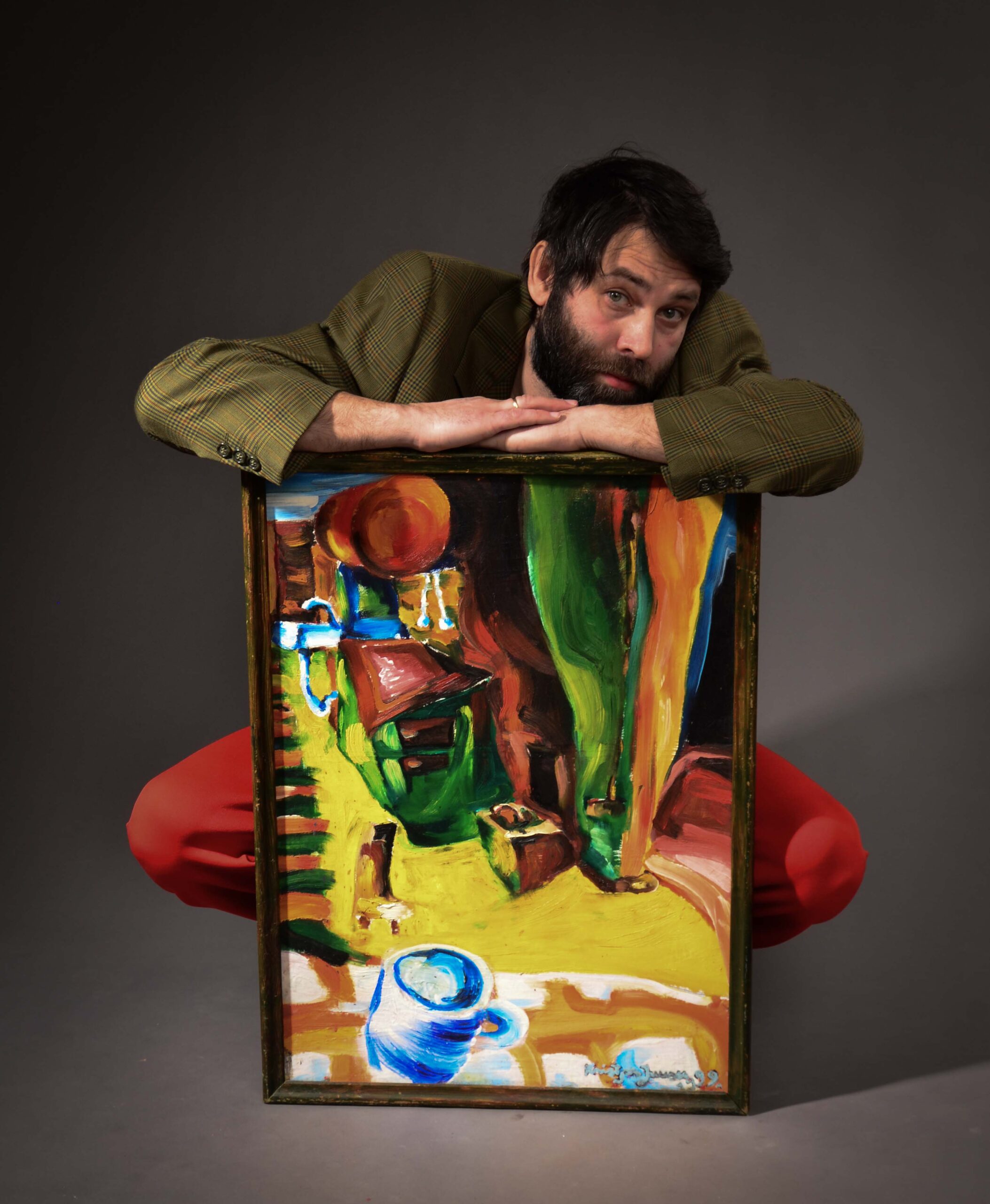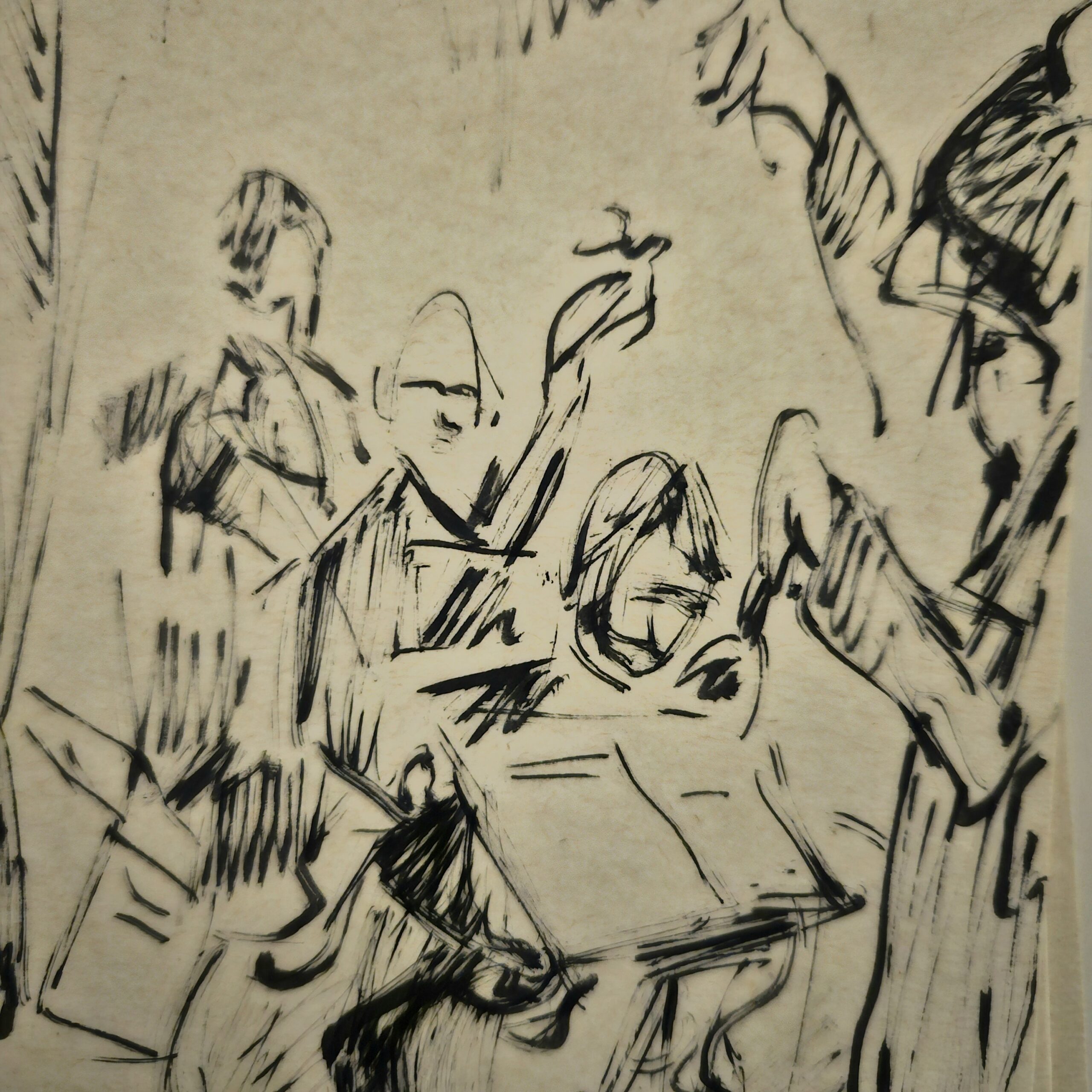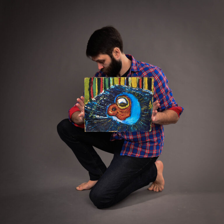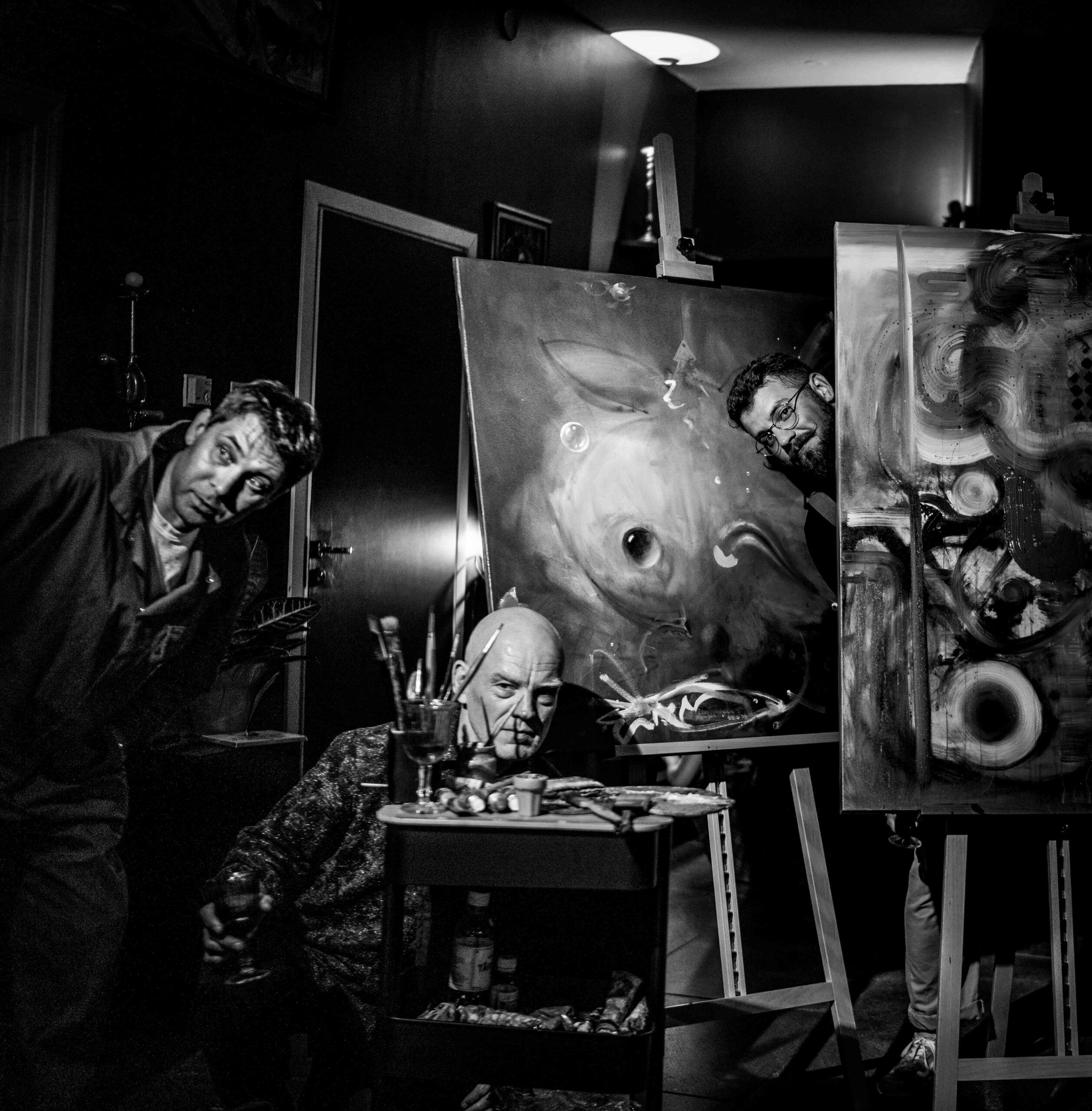 Joonistame koos Kristjan Juusuga. Molbert, paberid, pintslid koha peal.