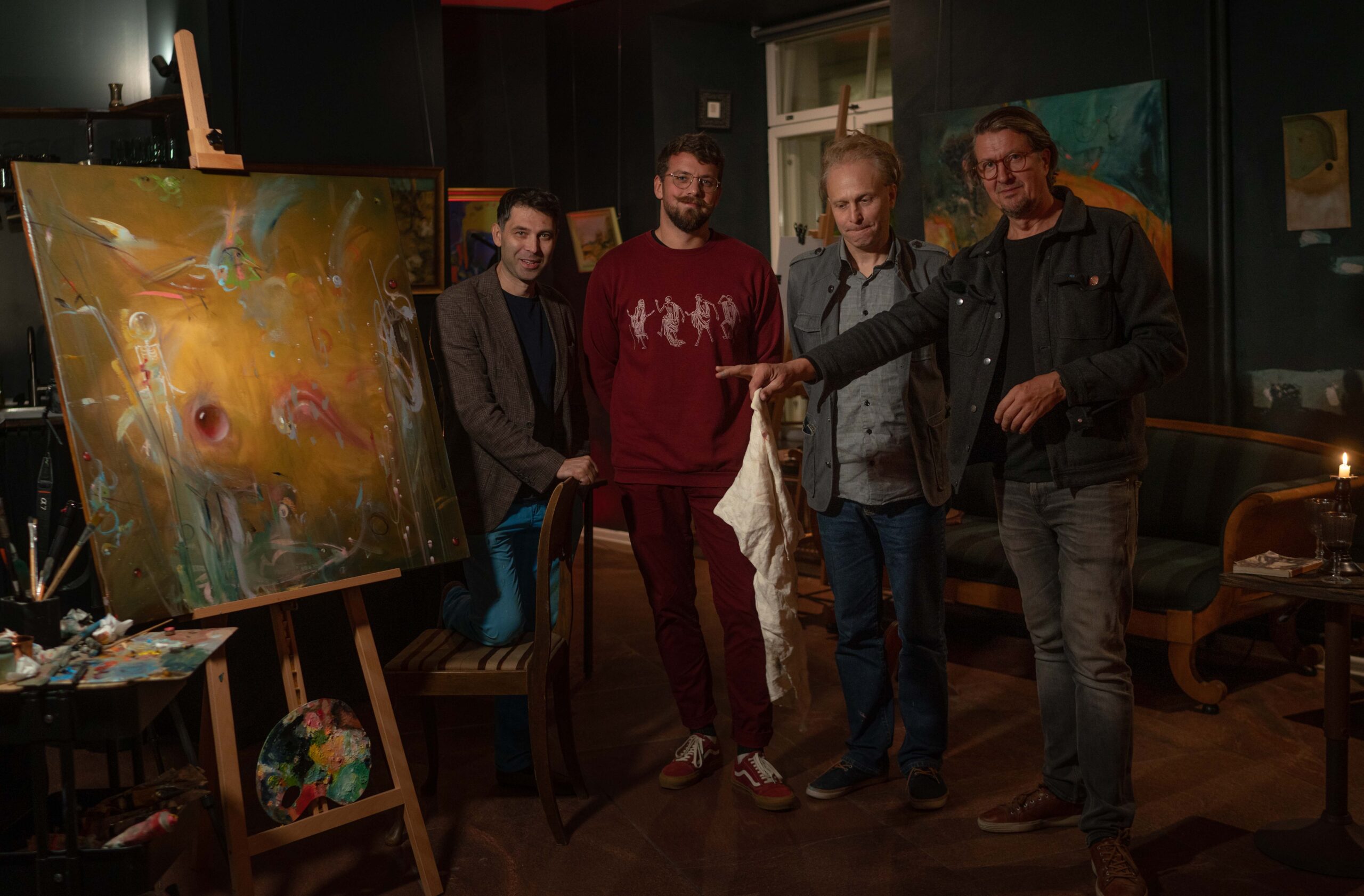 Kunstnikud Laurentsius, Mauri Gross, Leho Rubis, Henrik Hürden ja Kristjan Juusu maalisid ühismaali.