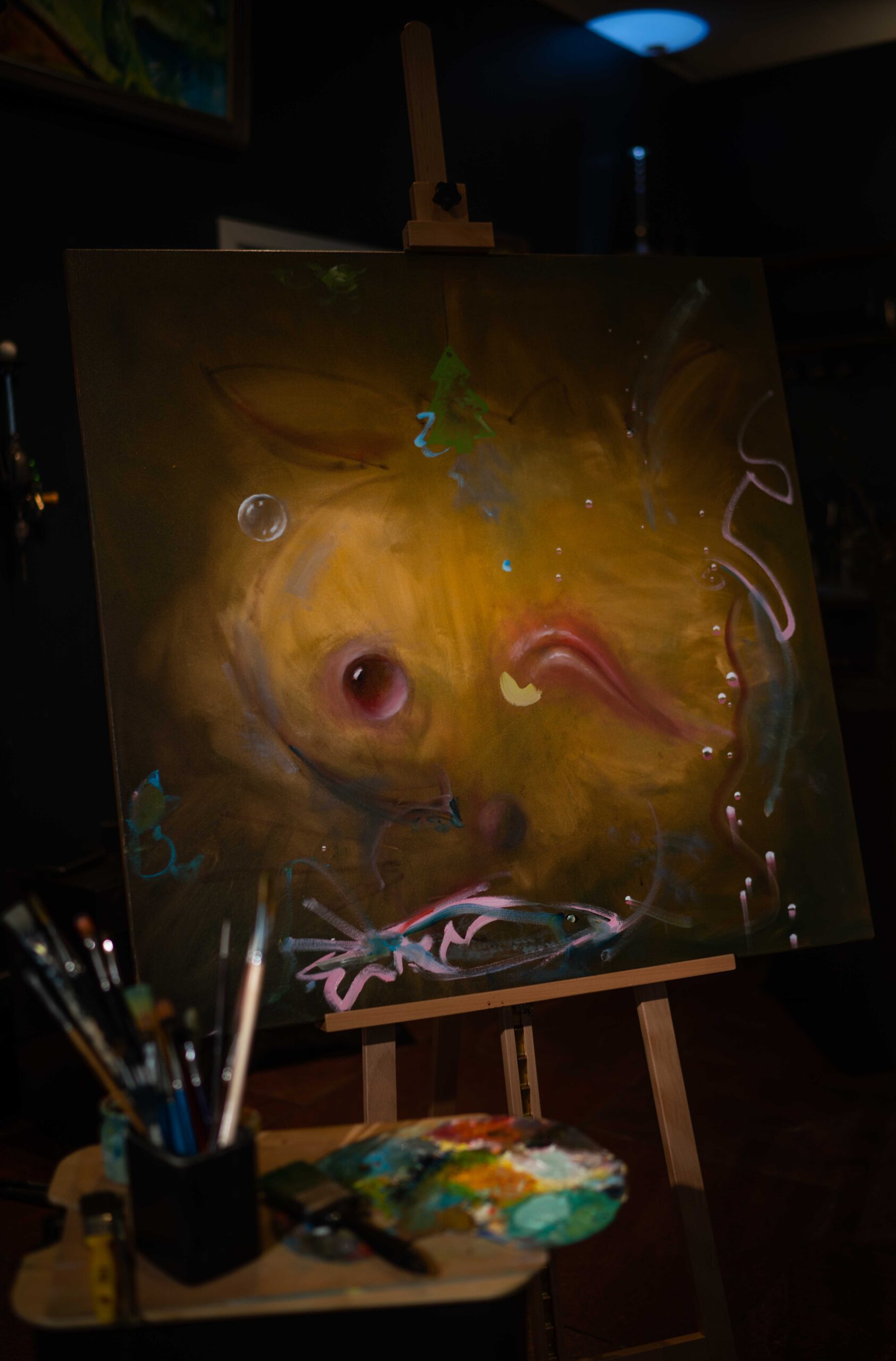 Teos sünnib publiku silme all – viie omanäolise kunstniku käekirjade kohtumine ühes lõuendis. Abstraktne ja sürrealistlik, intuitiivne ja poeetiline – maal on kui kasvav organism, mille lõplik kuju avaneb alles sündmuse lõppedes.